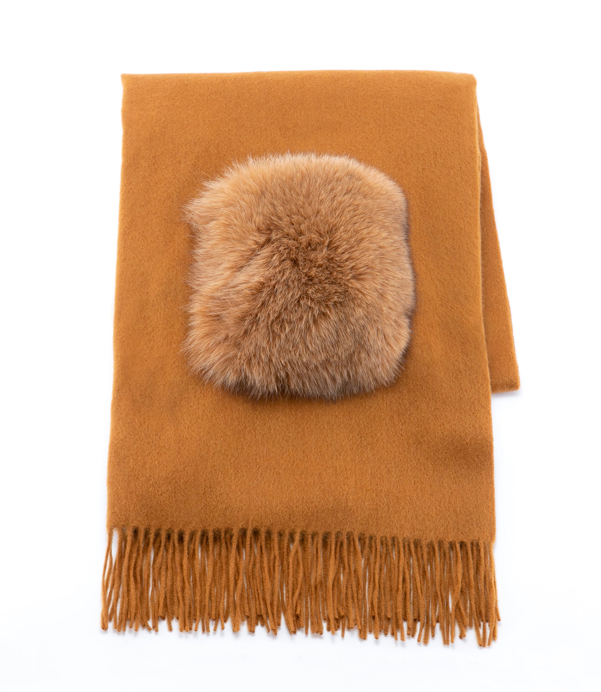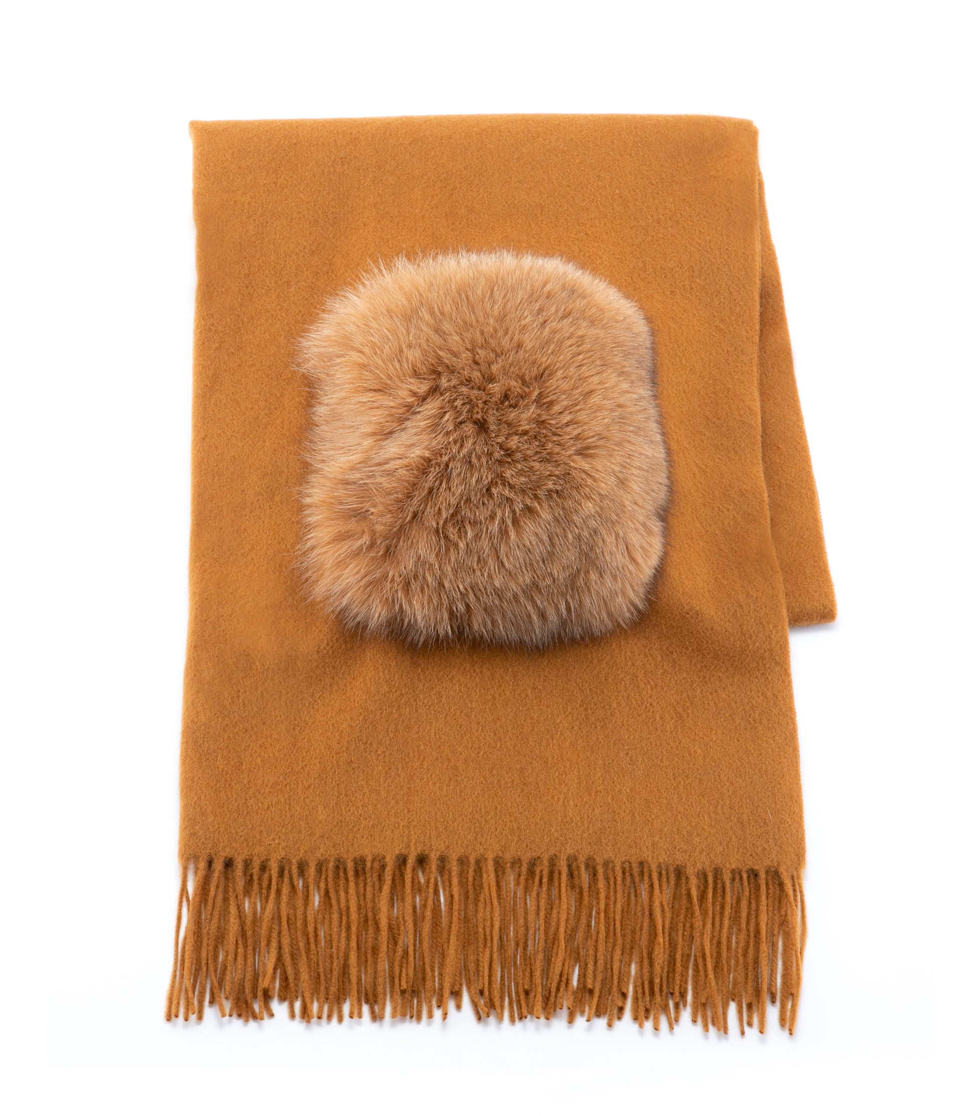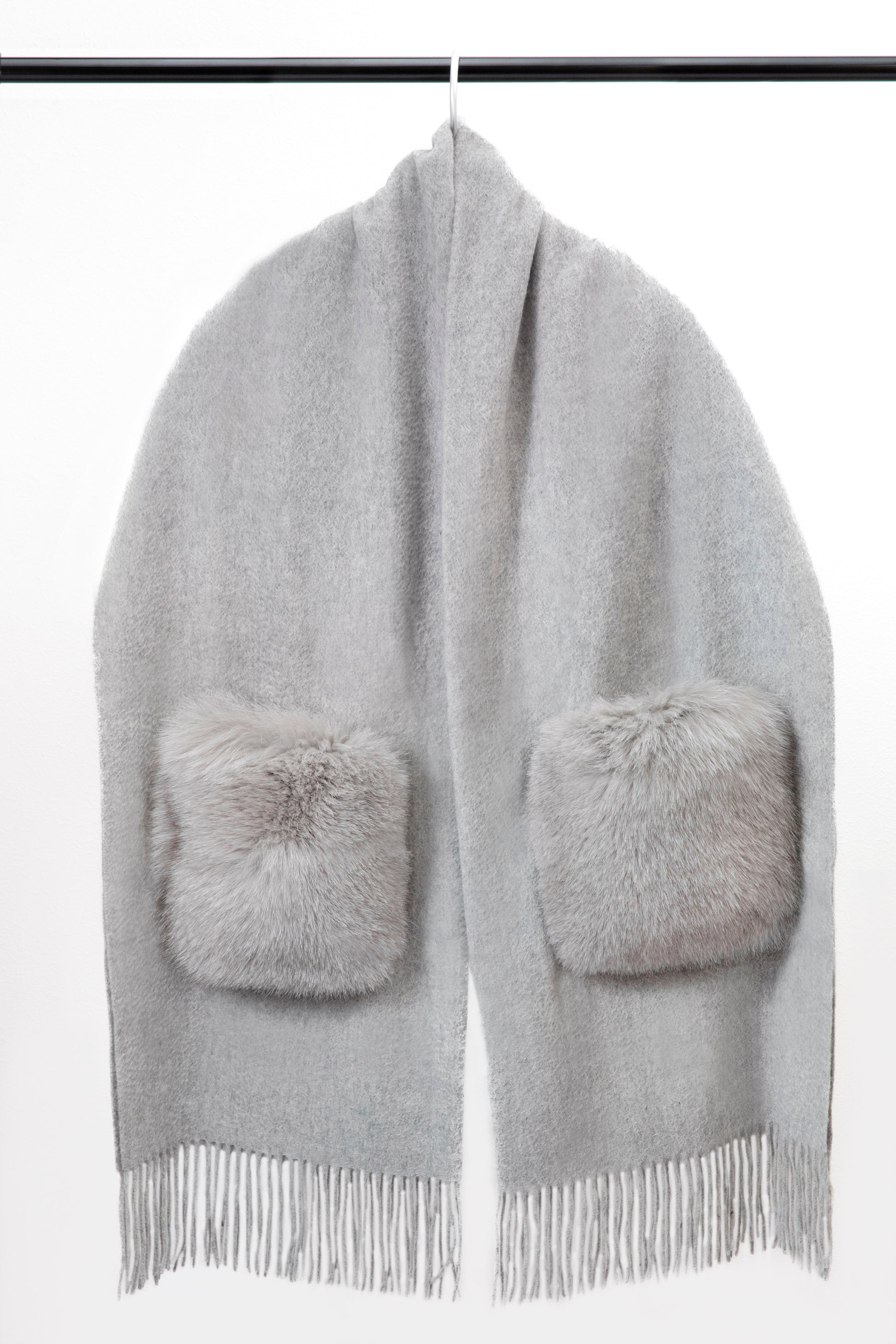 肌触り抜群のカシミア100%のストールに大きなフォックスファーポケットをつけました。