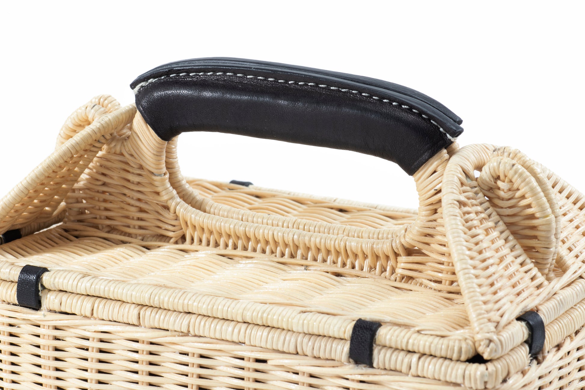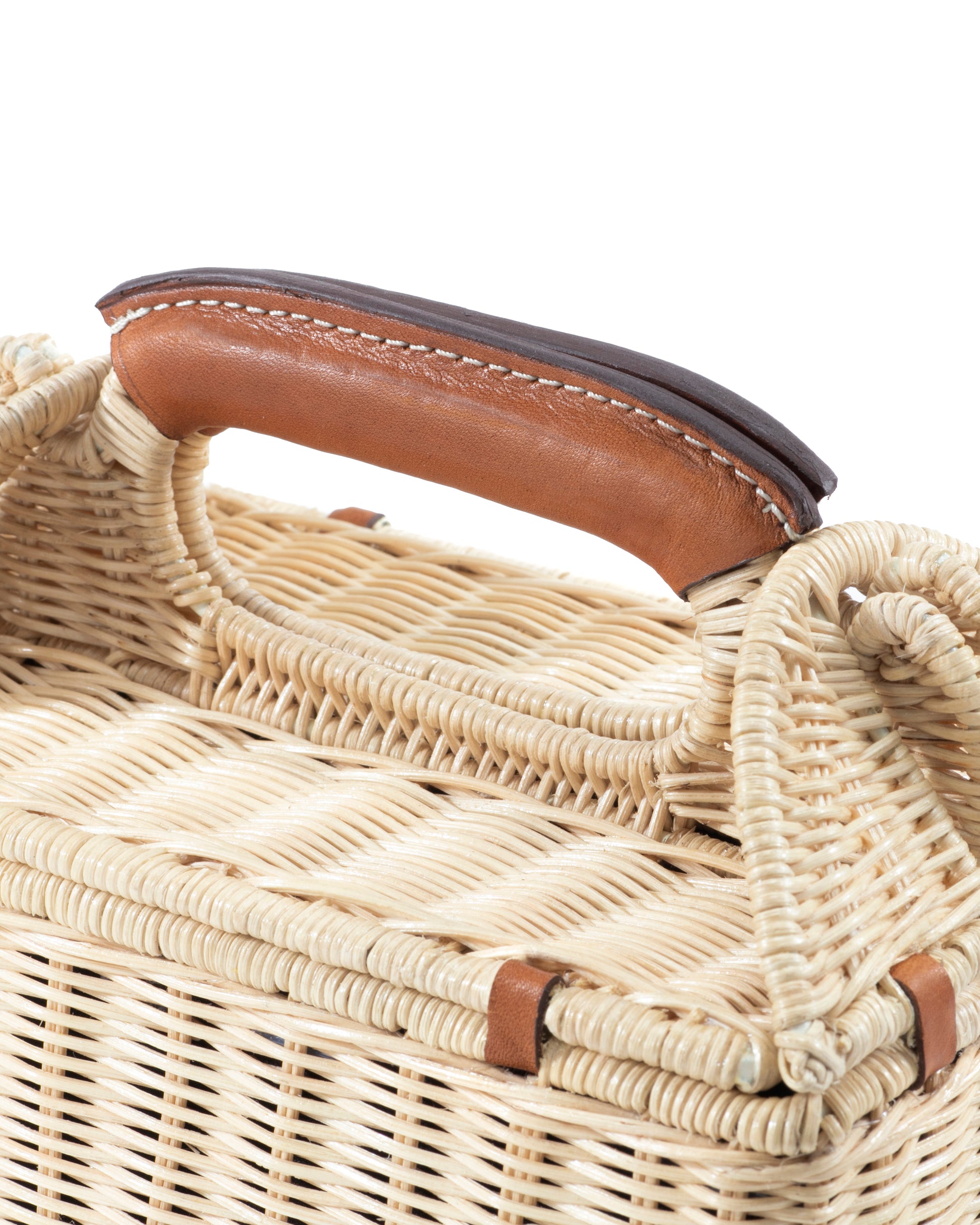 ハンドルやジョイント部分には上質な本革を使用し、ナチュラルなかごに都会的な雰囲気をプラス。